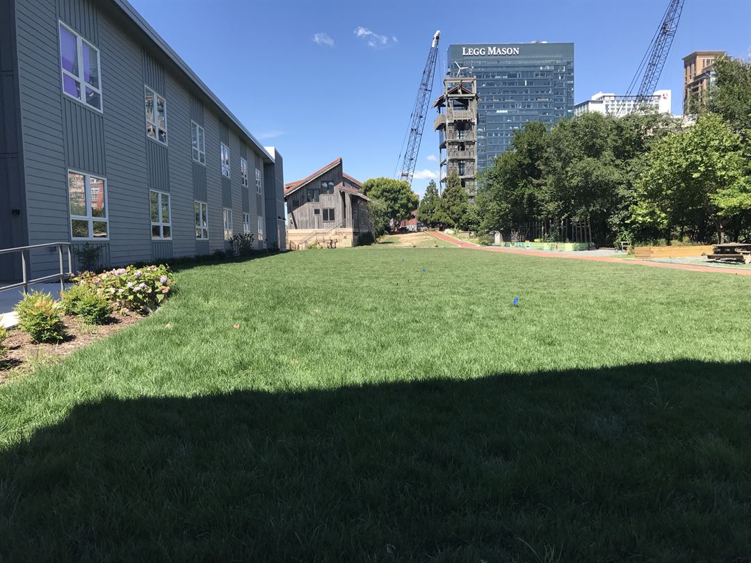 Positioned in the center of the up-and-coming Harbor Point in historic Fells Point, Living Classrooms Foundations East Harbor Campus is the perfect destination for your next special event. Within the campus is a large, grass field and a courtyard overlooking water's edge. The facility is entirely outdoors, and rental of a tent and portable restrooms is required to ensure the events success!