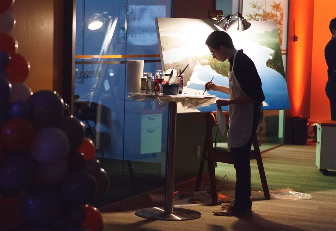 The exchanging of vows, the first dance, and portraits are just some of the scenes that can be painted on the client's special day. Clients determine the size of the canvas, amount of paintings to be completed and what scenes they would like depicted.