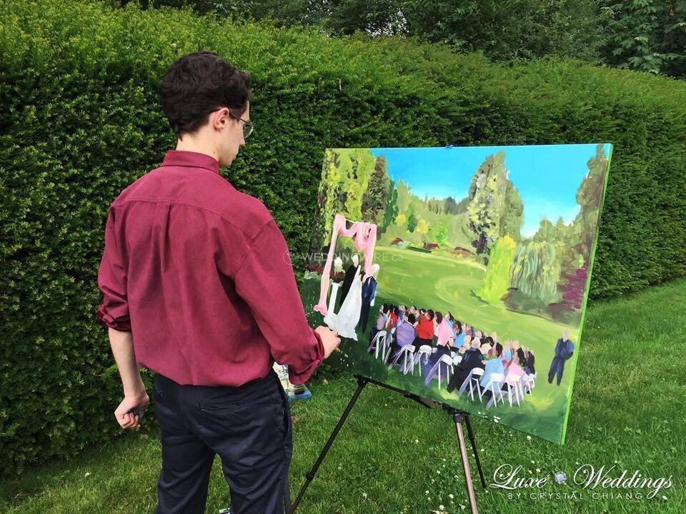 John Gingrich is a live painter who captures the joy of your wedding day or other special event on canvas, realistically and fast.