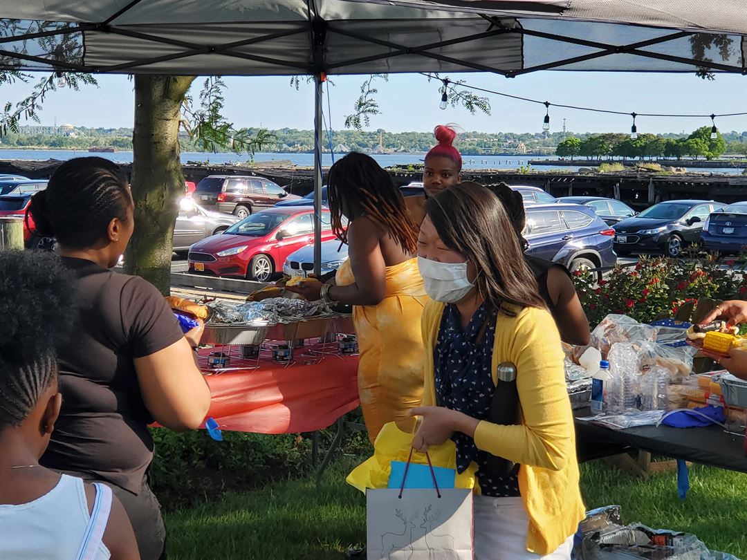 -Covered picnic area with tables