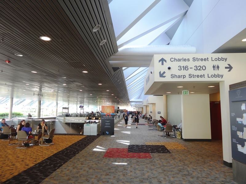 It is a massive place, containing about 1,225,000 square feet of space available for rent. I was recently there for two different conferences, one work related, and the other for training. I can say with confidence that of all of the conference centers that I have been to, this is by far the best. Staff is friendly and easy to deal with, and not intrusive. Security was nice and not overbearing, and very approachable. It is connected by sky walkway to the Hilton Baltimore hotel, making it a very convenient place to stay while at a conference. The massive building has many areas for rent.