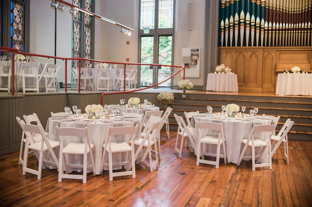 Perfect for wedding/receptions, corporate and non-profit events, the venue is handicapped accessibility with flexible seating options, offers free WIFI, a bridal/dressing room, service kitchen and AV is available at an additional cost. To surprise your guests even more, tours of the Burying Ground and Catacombs are also offered!