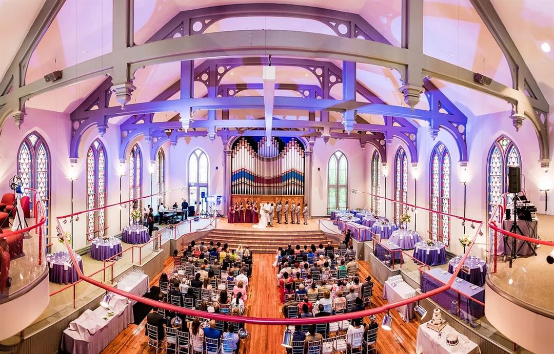 Westminster Hall, formerly a Presbyterian church has a unique combination of early Gothic Revival appearances, mixed with today’s modern conveniences. The restored Gothic church has elegant stained glass windows, carved oak woodwork and an 1882 Johnson pipe organ.