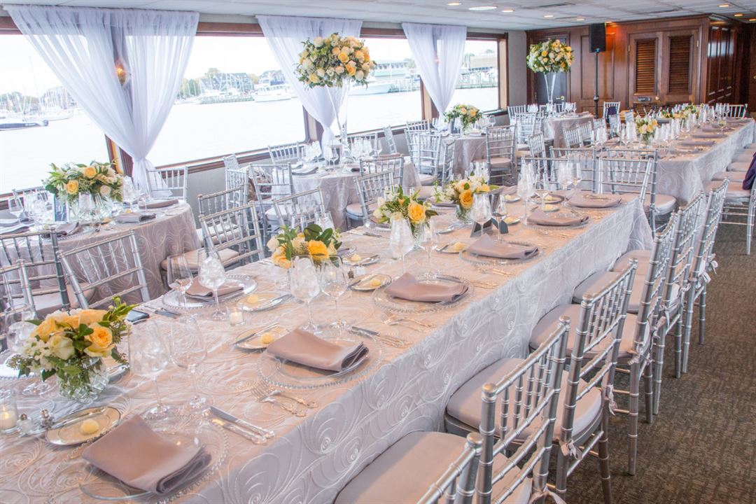 Chartering a beautiful yacht for your next corporate, social or wedding event in the Annapolis, Baltimore and the Eastern Shore area is easy thanks to Yacht Charters on the BaySM by Watermark. Our yachts serve as elegant, luxurious, and unique waterfront venues suitable for any type of event. From corporate cocktail parties and birthday dinners to weddings and vow renewals, we will make your event spectacular with our picturesque views of the Chesapeake Bay and caring crew. We pride ourselves upon being one of the best party venues in Maryland.