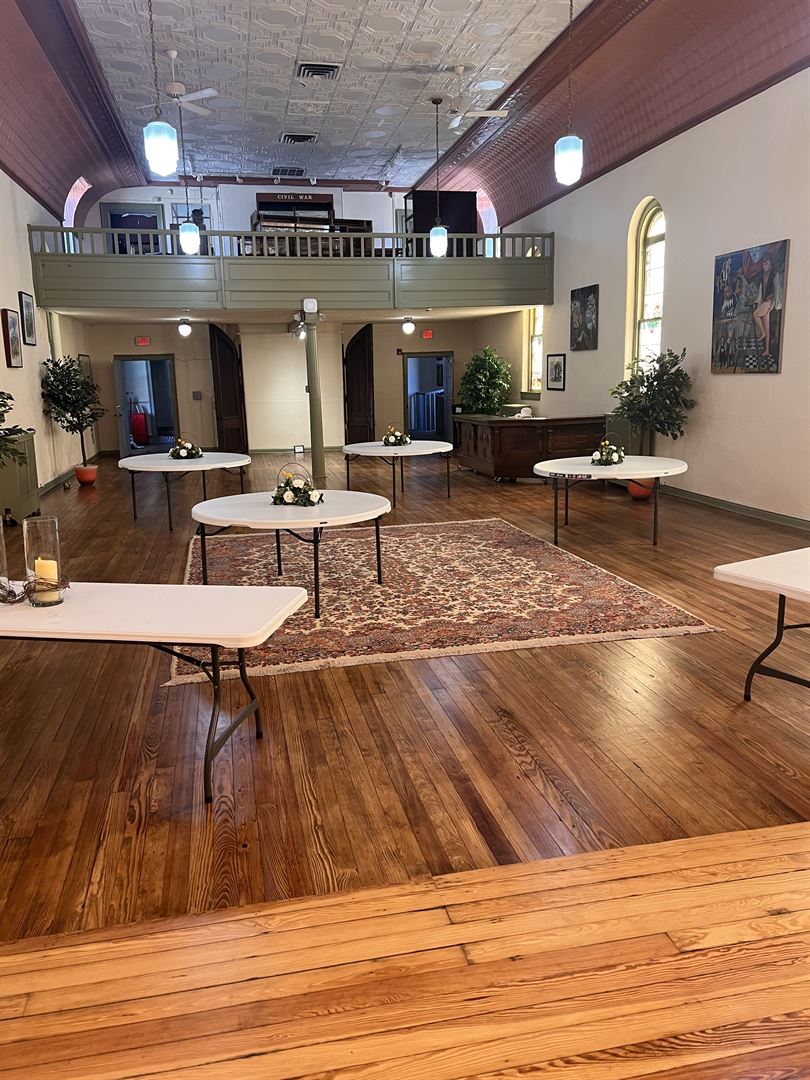 The Chapel at Spalding Hall is a beautiful room lined with stained glass windows and colorful art created by local artists. It has a large bar and a raised altar platform that would be suitable for your ceremony. The Chapel can accommodate events for up to 200 people and weddings for up to 150. There are several areas that can be utilized to accommodate your guests. Please look at the following options and terms and let us help you plan your unforgettable day.