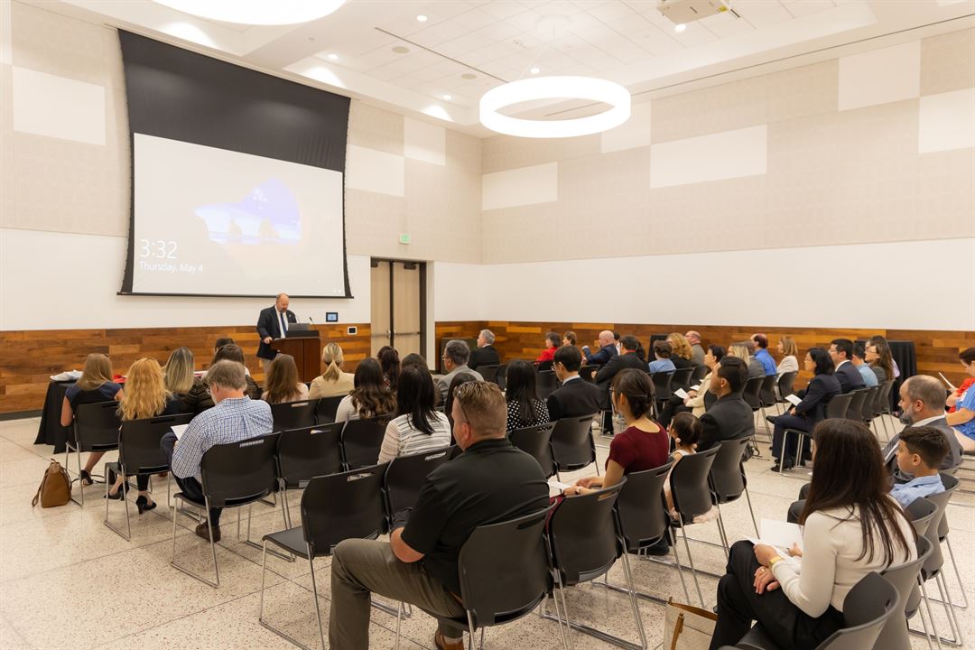 The Lamar University Event Center consists of three rooms on the eighth floor of the Mary and John Gray Library. The entire floor has ceiling to floor walls of glass which overlook the campus and the city of Beaumont. Because of limited furniture inventory, maximum capacity for each room varies based upon desired layout in adjacent rooms. See inventory list at the bottom of this page.