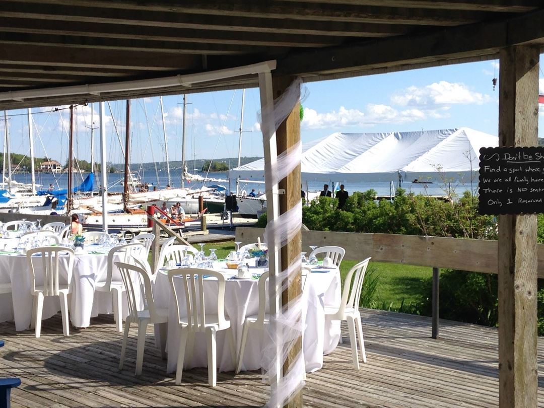 The clubhouse offers a upper wardroom which is serviced by the club bar and is a popular meeting space for club members. The upper level includes a deck overlooking the Bedford Basin and Marina. The clubhouse lower level includes a dining and social area serviced by the club's kitchen. The lower level includes a sheltered deck overlooking the club's Marina, and barbecues for casual social events.