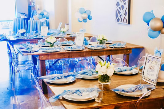Amenities such as a presentation-ready projector screen, cocktail tables and coverings, surround sound audio, secure Wi-Fi and elegant presentation pieces can also be provided.