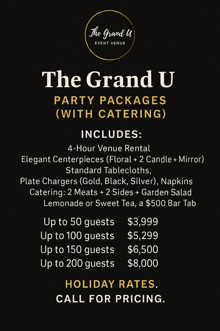 Events At The Grand U, LLC has an outstanding reputation as we strive to provide an atmosphere where our clients can celebrate their lives in style!