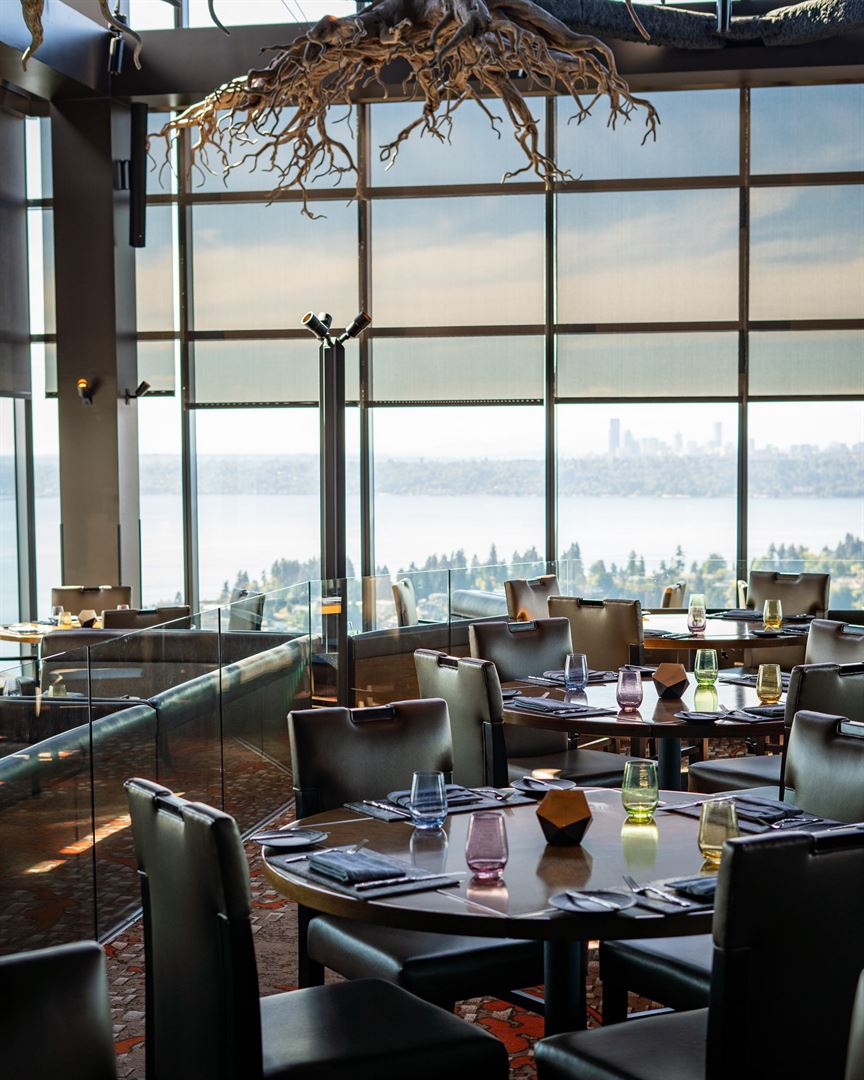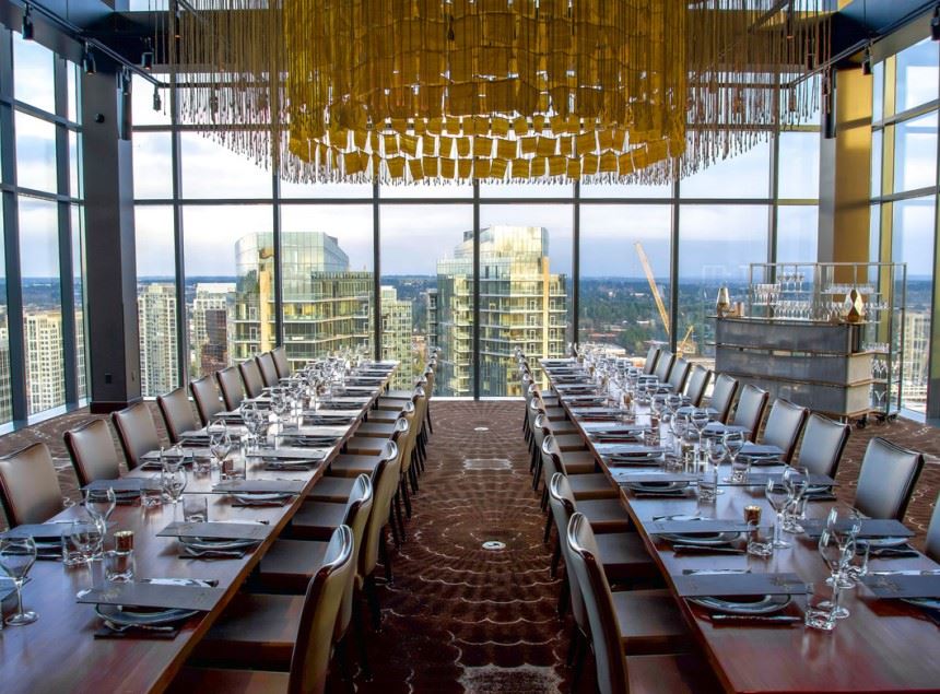 We offer three private dining suites to choose from. From its perfectly appointed private dining suite, Vertigo offers unobstructed views of the Pacific Northwest with its soaring floor to ceiling glass windows. Featuring a contemporary modern design, flexible seating arrangements, and one-of-a-kind custom art chandelier, "Sanctuary," the Vertigo suite will elevate your next dining experience of up to 100 guests.