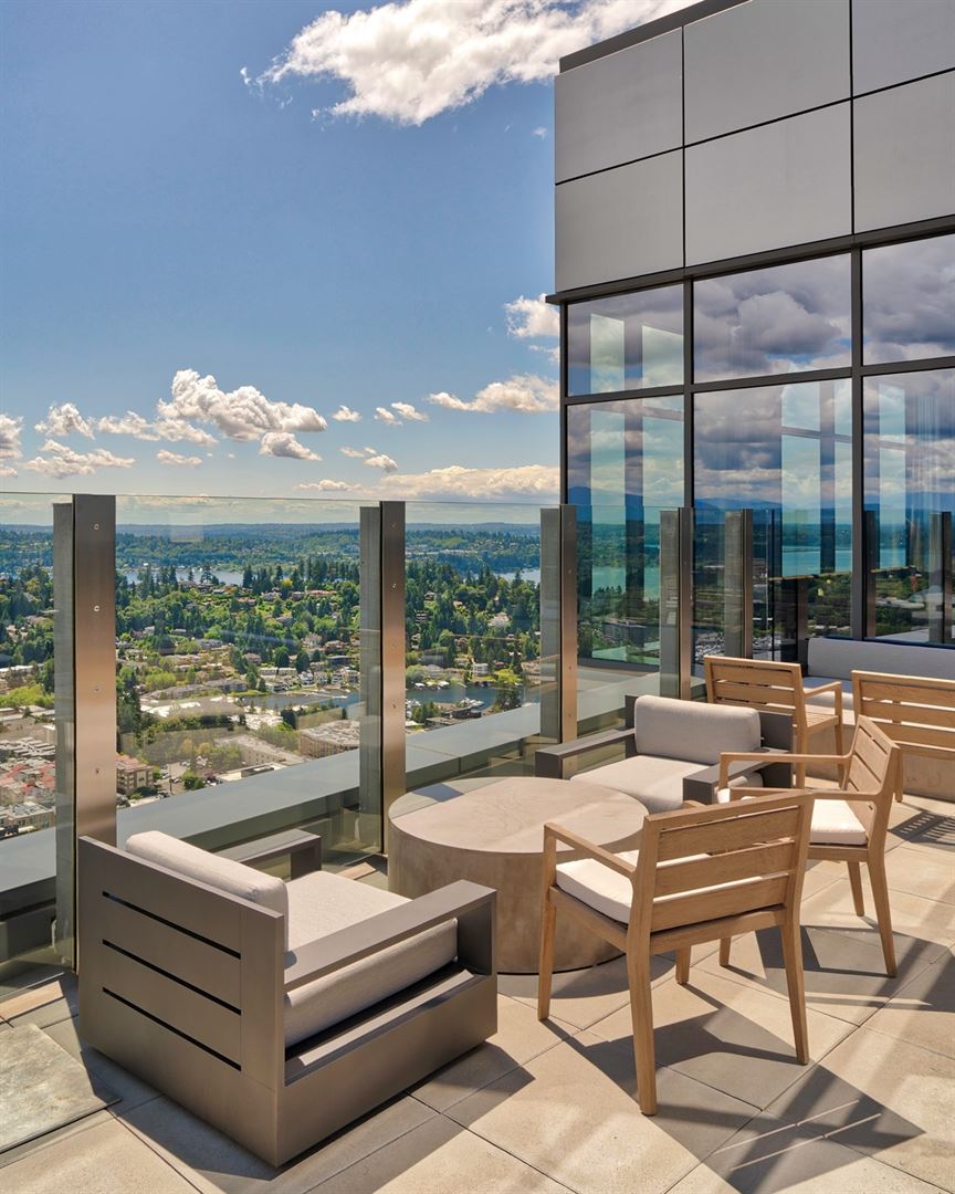 Vista provides a setting for up to 40 guests. The floor-to-ceiling glass windows look northwest, where guests will enjoy the Bellevue city skyline. Lake Washington spanning, and the Cascade mountain range. Offering Ascend's only private terrace, the Vista Suite is the ideal location for an indoor/outdoor event.
