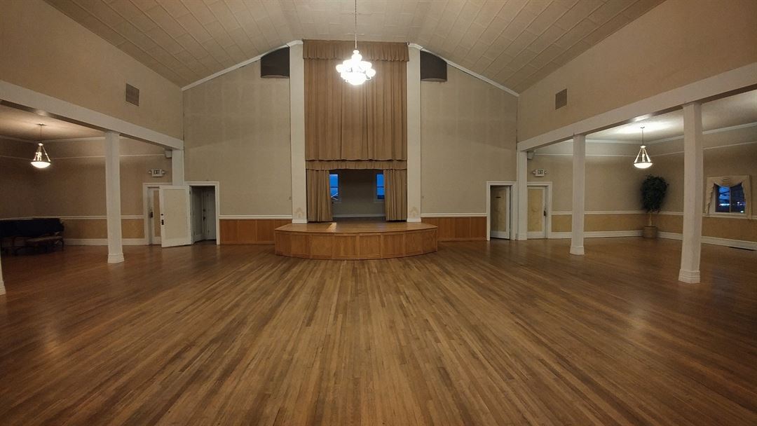 Upon entering this historical landmark, you are greeted by a spacious room with high ceilings, beautiful architectural detail, and a Steinway Grand Piano, all resting on over 4,400 square feet of oak flooring, plenty of room for special gatherings, great music, and dancing.