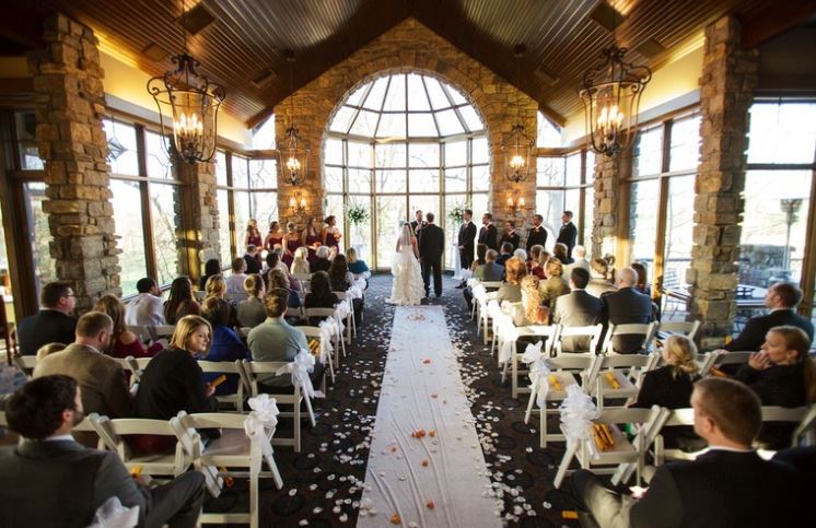 The Country Club at Loch Lloyd is one of Kansas City's most exceptional wedding and reception sites. The country club offers beautiful settings for outdoor and indoor wedding ceremonies and receptions. An exceptionally memorable location is the event lawn which overlooks a picturesque pond, wooded landscape and the Tom Watson Signature Design golf course. Dramatic floor to ceiling windows within the Clubhouse bring your guests fabulous views of the course and the surrounding landscape.