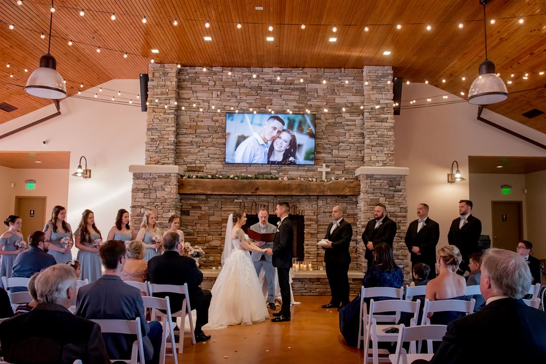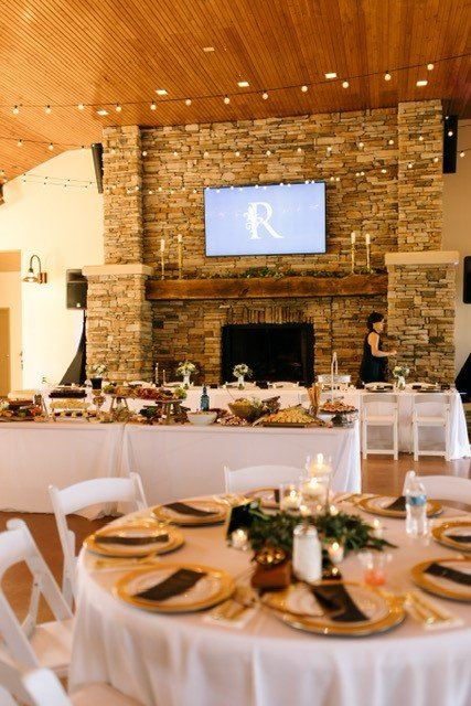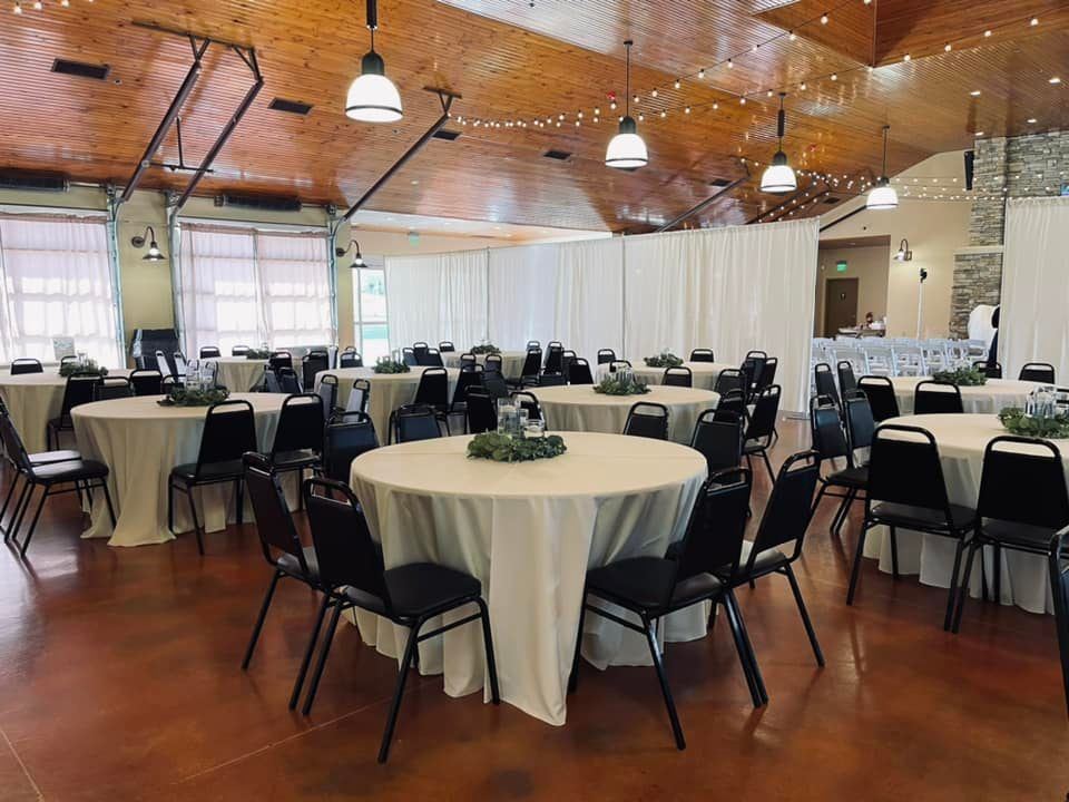 Once inside, you will experience the elegance of Memorial Station, with state-of-the-art audio/video, a grand fireplace, inviting fire pit, 80-inch TV, and round tables and chairs to host up to 275 dining guests.