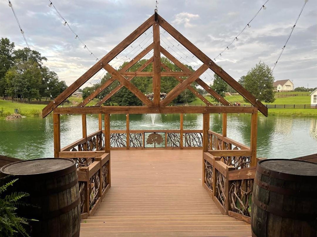 Boutique styled venue on 67 acres of rolling hills, lush green Meadows surround the Wedding Chapel, twinkling lights and chandeliers throughout the 150 foot Covered Bridge and the First Dance Dock. Come and experience the relaxing outdoor sitting area surrounding the stone fire pit area, all overlooking the picturesque pond.
