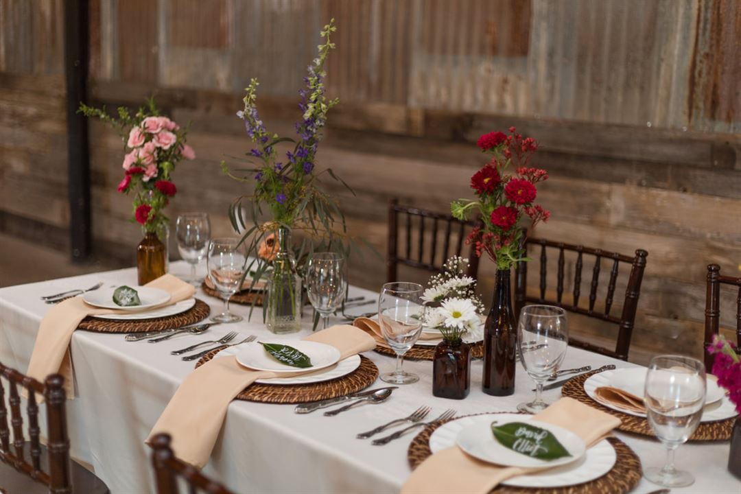 Although rustically beautiful all on its own, we chose to keep the rusted tin and old barn wood décor simple to provide you with the flexibility to add personal touches that will make your event special and unique. We also have a chalkboard wall you can decorate to provide your guests with a fun and memorable photo opportunity!