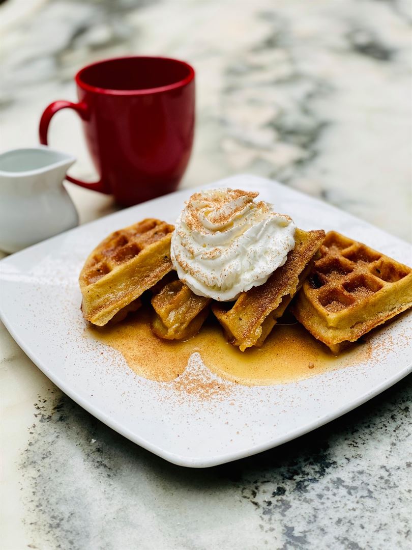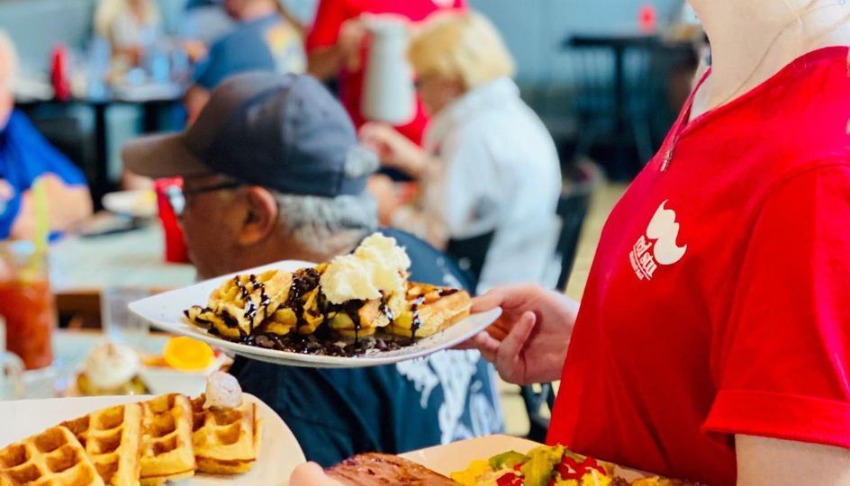 Fun, sun, and waffles. Soft and elegant interior featuring bubbles and bloodies at the bar. Our kitchen chefs up unique items, try the Migas, and indulging options, like big as your face caramel rolls, along with traditional morning menu staples.