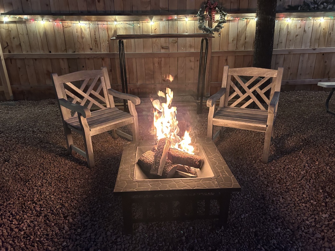 Outdoors we have Free Firewood, a Fire Pit, Smudge Pot, with a bottomless supply of Fire Oil.