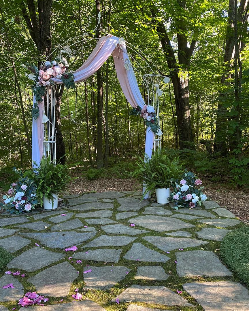We have two outdoor ceremony areas; the fairy garden grove tucked under a cathedral of trees, and a classic pergola on the front lawn.