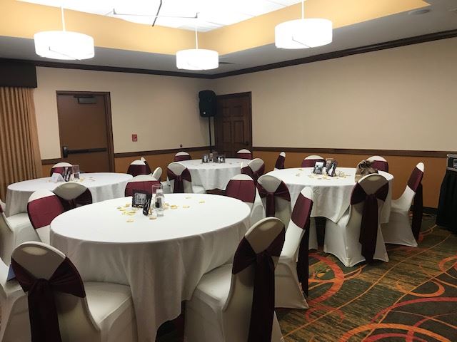 Choose from 3 private rooms: Our Banquet/Meeting room is 1150 square feet with 85" smart TV, wall divider allows 2 rooms 575 square feet each, or the Boardroom is 375 square feet, 75". Includes: TV, round, rectangle, buffet, and high top tables, chairs, black linens, set up and break down. Food & Beverage not included, we will coordinate or bring your own.
