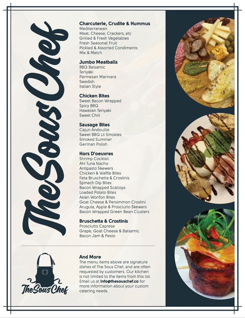 Are you looking for someone to provide the food at your next event? Large or small, we do it all! Get in touch to start planning the perfect meal for a business lunch, wedding, cocktail reception, and more! Even ask about some of our options you can pick up with ease!