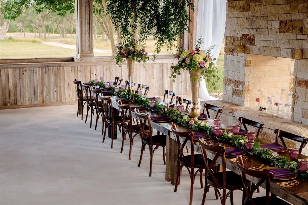 The barn is complete with a 3500 sq ft wrap around patio, a saloon style bar, a double sided rock fireplace, and cantilever windows allowing endless views of the gorgeous ranch grounds. Also available for our guests: Tables and Padded Resin Chairs for 200 guests, gorgeous 14 foot chiffon drapes, and multiple scenic ceremony sites.