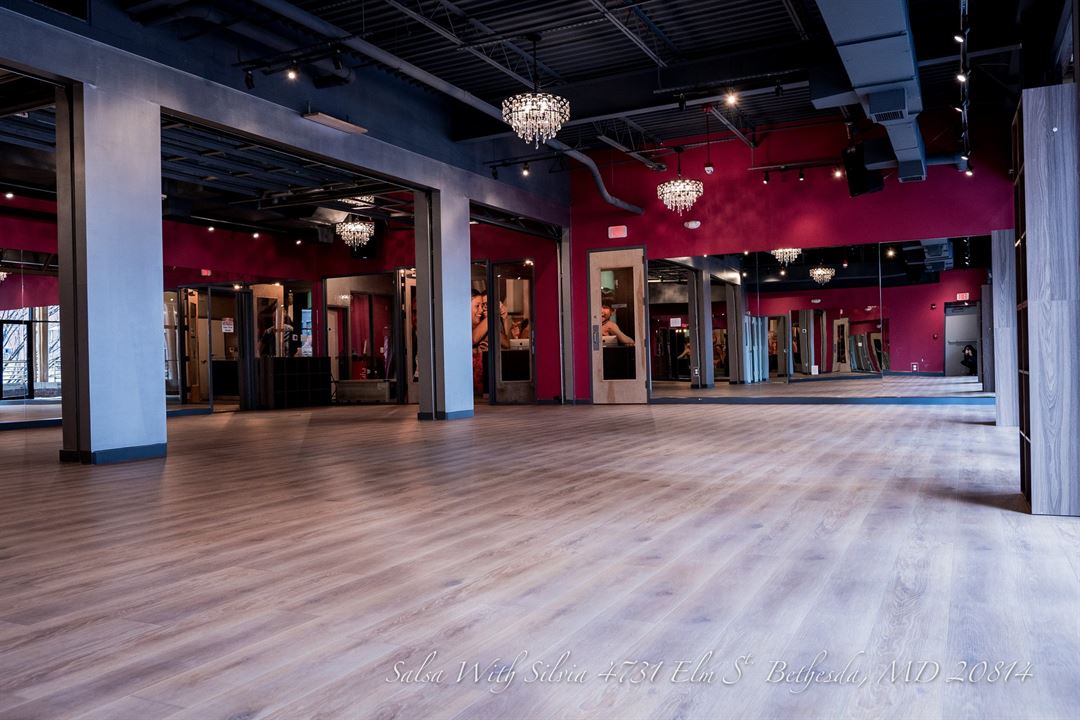 Our dance studio, built and opened in December 2019, is conveniently located on Elm Street, in the heart of downtown Bethesda, MD. The studio has 3,106 sq. ft. of total space and is 2,000 sq ft of open are available for events, corporate retreats, weddings, birthdays, bar-mitzvahs or any other celebration you may want to host.