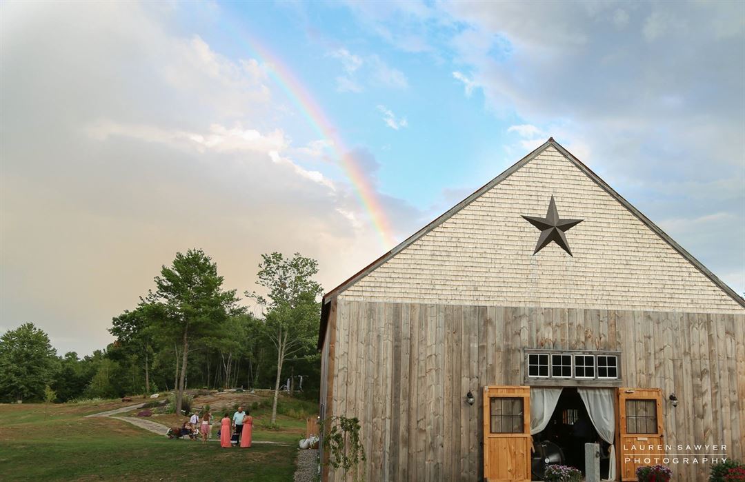 The Hitching Post...is a idyllic New England barn built in 1830 situated on 100 acres along the Saco River in Dayton, Maine. Ceremony can be held outdoors overlooking the rolling fields and beautiful pastures. Seating for 150 guests with rustic barn board tables and beautiful Chiavari chairs included. It is the perfect quiet country setting for the Barn Wedding of your dreams.