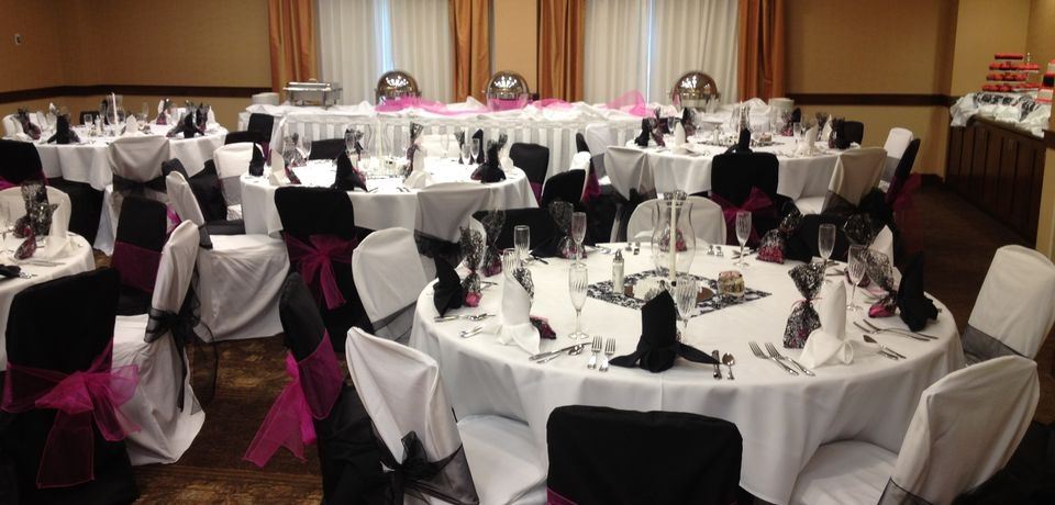 Our hotel offers a wonderful all-inclusive wedding package, which includes unlimited access to a wedding planner, centerpieces and décor, custom dinner and hors d'ouevres menus, group room discounts, and a personalized website created for easy hotel booking and venue information access. The package also provides a complimentary Bridal King Suite. Enjoy complimentary use of the meeting room for a bridal shower or dressing room for the bridal party and the lobby for a pre-reception cocktail hour.