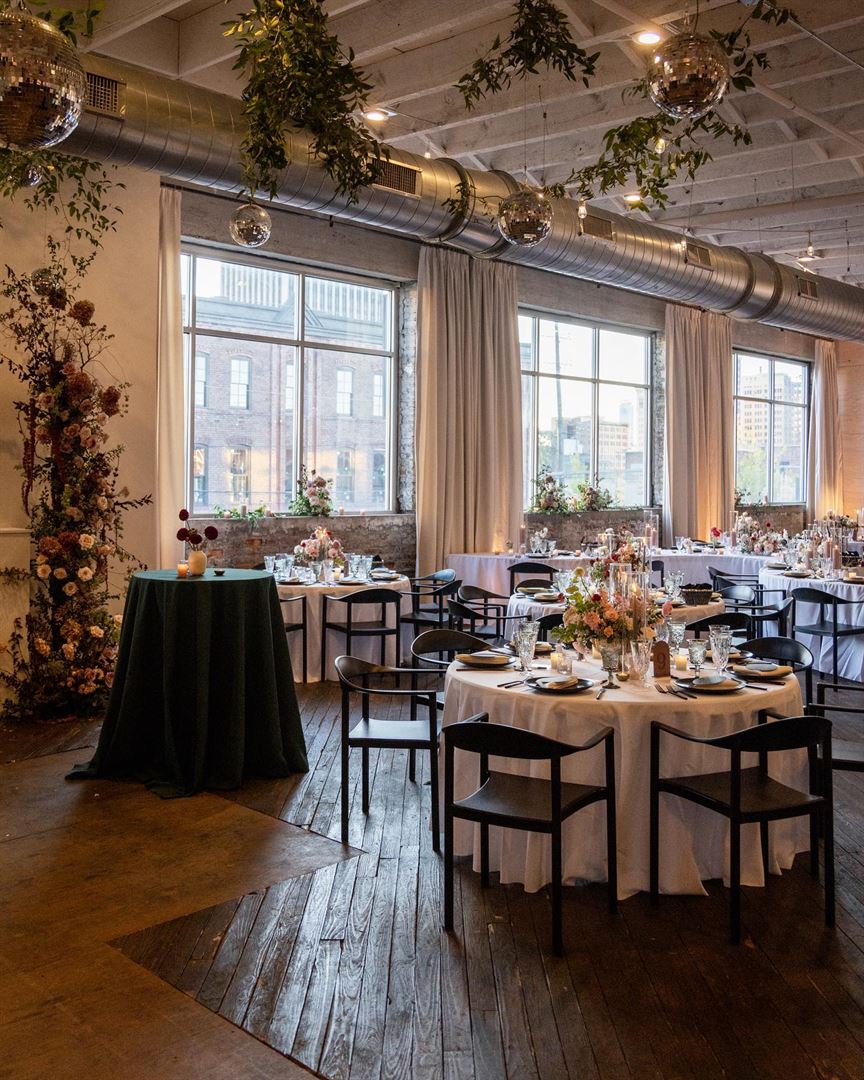 LUMI boasts 5,000 square feet of raw space illuminated by abundant natural light. Here, amongst high open ceilings and rustic hardwood floors, you can host a contemporary ceremony in any desired aesthetic. Transform the venue into a minimalist paradise or indulge in a boho-inspired dream with floral installs infused with your favorite color palette. For city weddings, the venue is an excellent home base for guests to enjoy the bustling heart of Birmingham center. Distilleries, craft cocktails bars, and tapa restaurants all lie within walking distance. Onsite, a get-ready suite, conference room, and catering kitchen are available, ensuring every need is met. At night, the space comes alive with dimmable lighting while the glow of the city beckons in the background.
