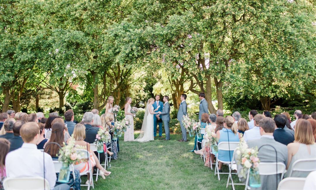 The garden is perfect for your wedding and reception, accommodating up to about 180 people. The Peggy Lee Hahn Garden Pavilion is ideal for intimate receptions and bridal showers (fewer than 50 people).