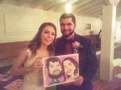 I offer live custom caricatures for the bride, groom and their guests. I also do live painting I'm also available to do realistic portraits as well
