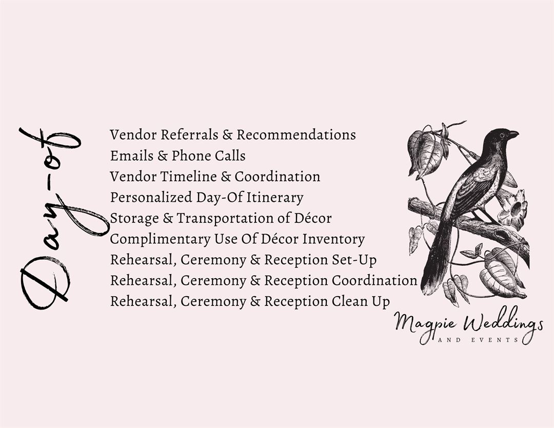 Magpie Weddings is a premier event planning and design company located in Southern Indiana that focuses on making your day stress free so you can enjoy the memories you are making. No matter your budget, style, or the size of your event, Magpie Weddings will take care of all the details while providing personalized service to create the event of your dreams. Each event is special, no matter if there are 10 guests or 1,000 guests, so contact us today to get started on building your personalized package.