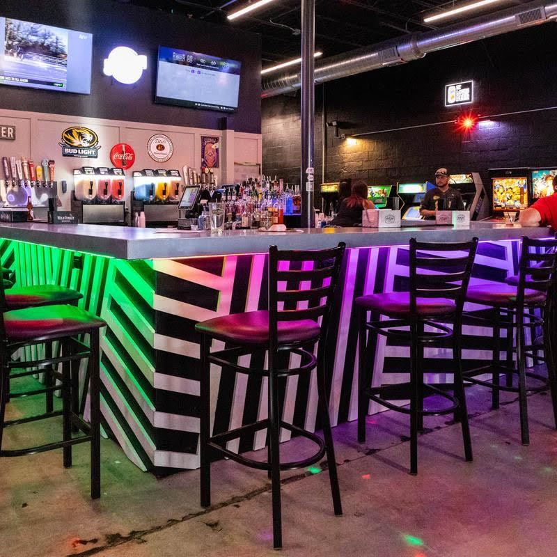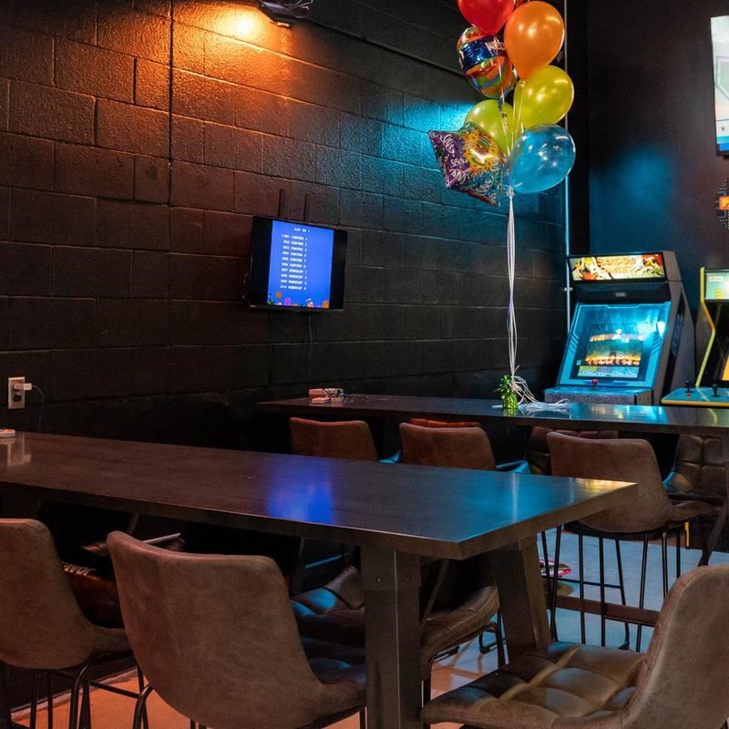 We are a arcade bar located in downtown Blue Springs that has old fashioned arcade games, a golf simulator, virtual reality and a full bar. We have a party room that sits about 25 comfortably but more space located around the bar and three, eight top tables located around the arcade. We are kid friendly from 11:00am to 9:00pm and 21+ from 9:00-close.