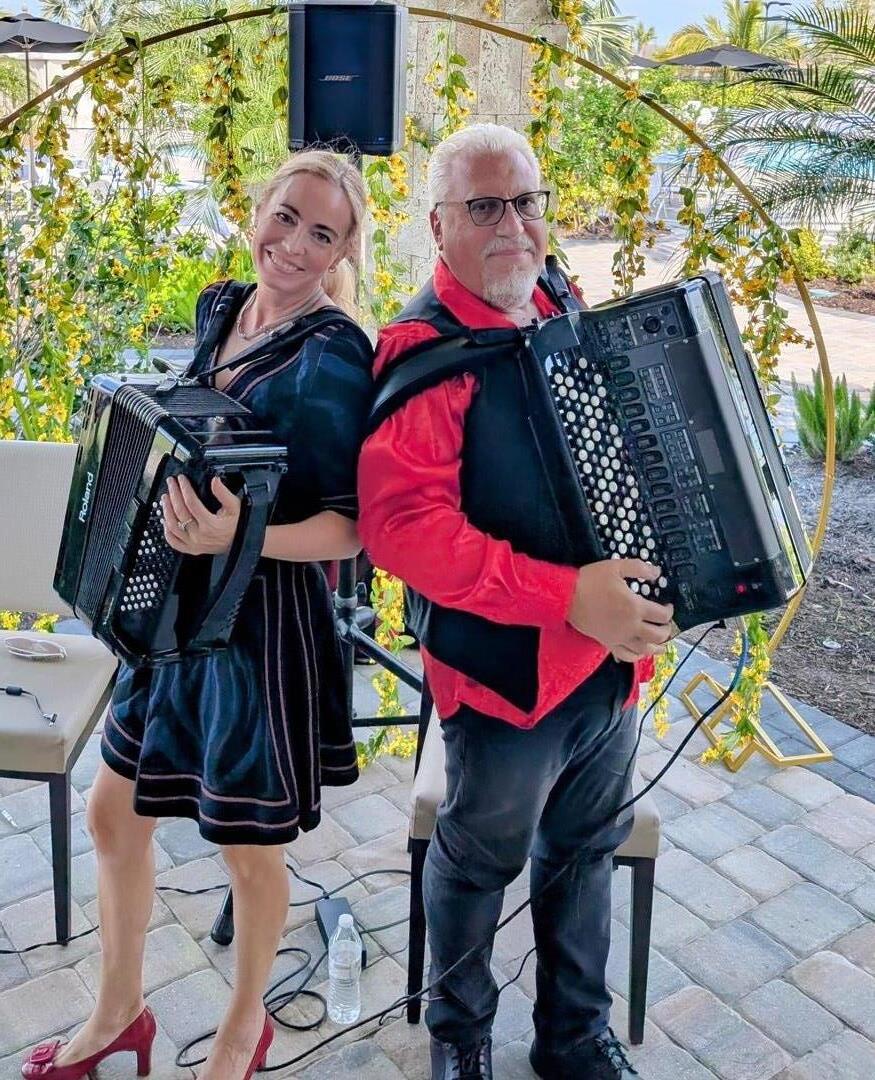 Peter and Tatiana are world-class entertainers and virtuoso accordionists, ready for your wedding ceremony: preludes, processionals and recessionals, cocktail reception, private parties, festivals, concerts, corporate events, country clubs and many more. They performed for an American Express corporation, PBS South Florida, the American German Club in Lantana, the Little Italy Festival in Port St. Lucie, St. Patrick's Day celebrations... Specializing in World music, they deliver performances featuring Spanish, Italian, French, German, Irish, Ukrainian, Greek, Gypsy, Klezmer, Jewish, Polka, Tango, Waltz, Rumba, Oktoberfest, Hanukkah, and Christmas music. From one to four performers.