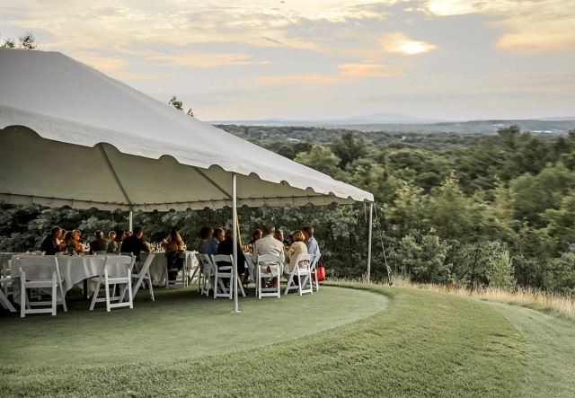 With a capacity of 150, the Fireplace Room is a great location for smaller events. Its intimate space is centered around a stone fireplace, while floor-to-ceiling windows overlook illuminated pine trees. A wrap-around deck is designed for outdoor cocktail parties. The Fireplace Room is the perfect location for smaller, “boutique” style weddings and events.