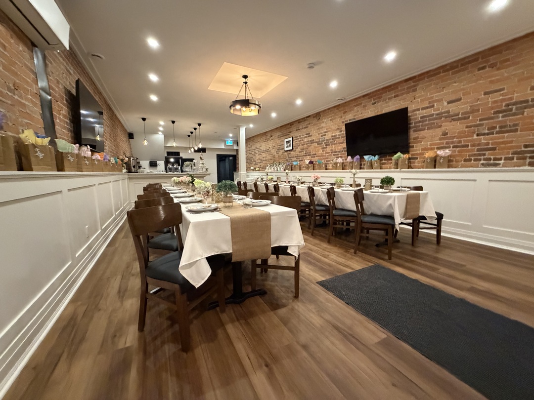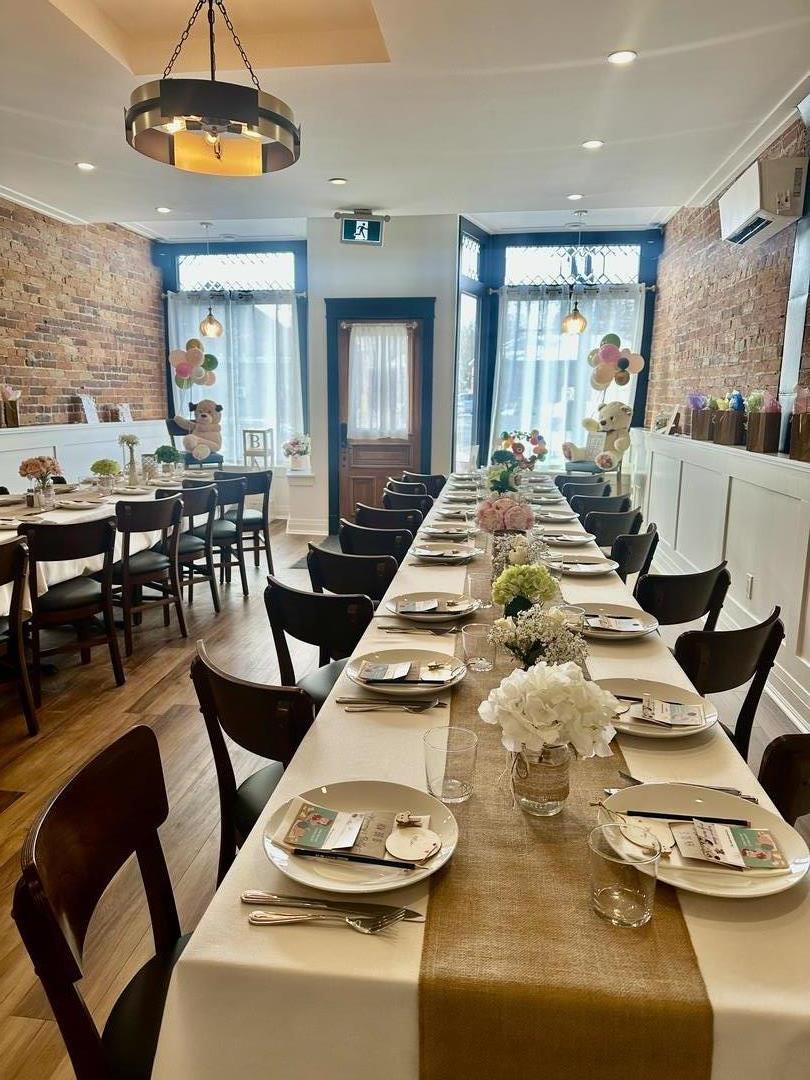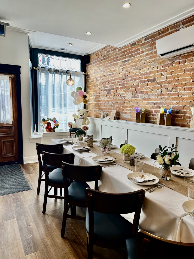 Our private event space seats up to 44 guests and is perfect for birthdays, bridal showers, engagement parties, corporate events, and intimate celebrations. The space offers a warm, welcoming atmosphere with flexible layout options to suit your style of event.
