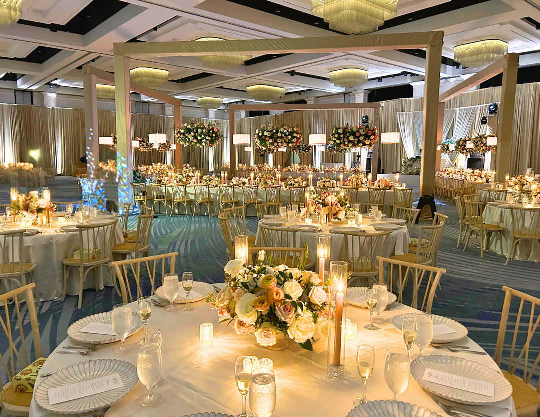 With over 82,500 square feet of flexible meeting space featuring two ballrooms, numerous banquet rooms, and abundant outdoor facilities, we can accommodate modest settings of 24 guests to receptions for over 1,400 people.