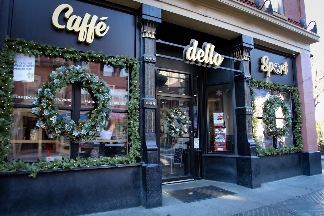 Cozy European Cafe' with comfortable seating, coffee, pastry, gelato, food, beer, wine and cocktails.