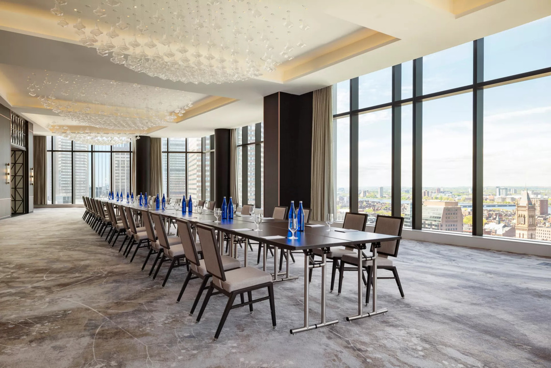 Set across the 18th and 19th floors, and linked by our dramatic spiral staircase, our event venues are an inspiration, perfectly embodying the city’s legendary spirit of celebration. Complementing our meeting venues, Amar and Blind Duck provide a refined atmosphere for hosting unforgettable moments. Two full floors of meeting and entertainment space are accessed via the hotel’s grand staircase, majestically spiraling through the sensational three-story atrium. Inspired by the window boxes on the buildings around Back Bay, the stair’s ‘hanging gardens’ bring Boston’s beautiful green spaces into the hotel. With its curved oak stairs and copper balusters, it’s the perfect spot to start or end your special occasion.