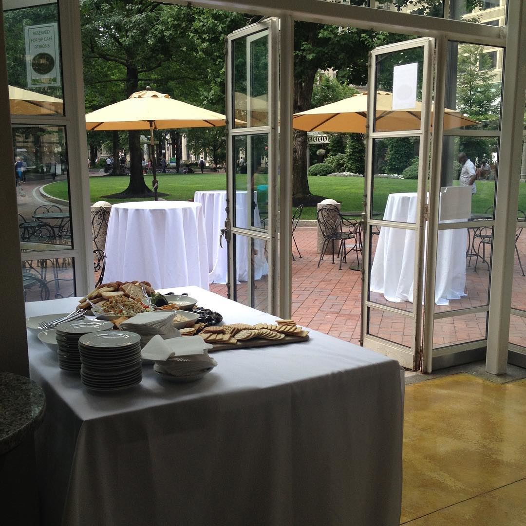 Nestled in Post Office Square park, a quiet space in the middle of bustling Boston, our beautiful glass gazebo and its picturesque surroundings are available to rent for your private event. The space is perfect for corporate events! We offer everything from a brunch buffet to a formal dinner, matching whichever formality you desire. We can truly accommodate your every wish, and at a completely affordable rate!