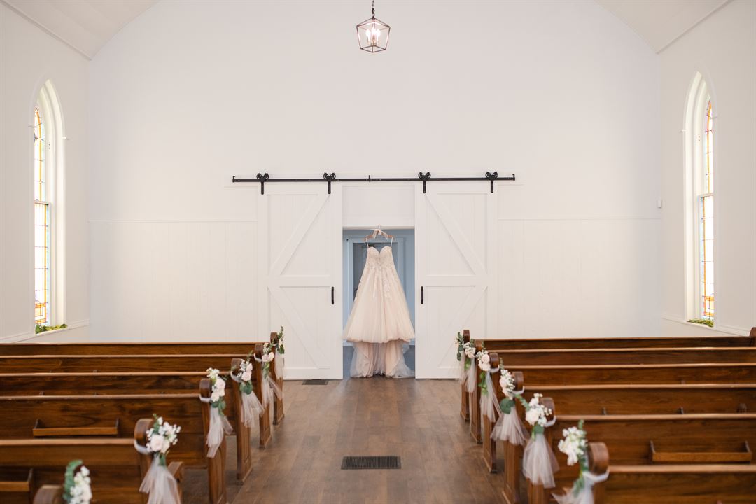 Our historical chapel features beautiful white walls and original stained glass windows. After your ceremony, gather with your guests for dinner and drinks in our farmhouse-style reception hall.