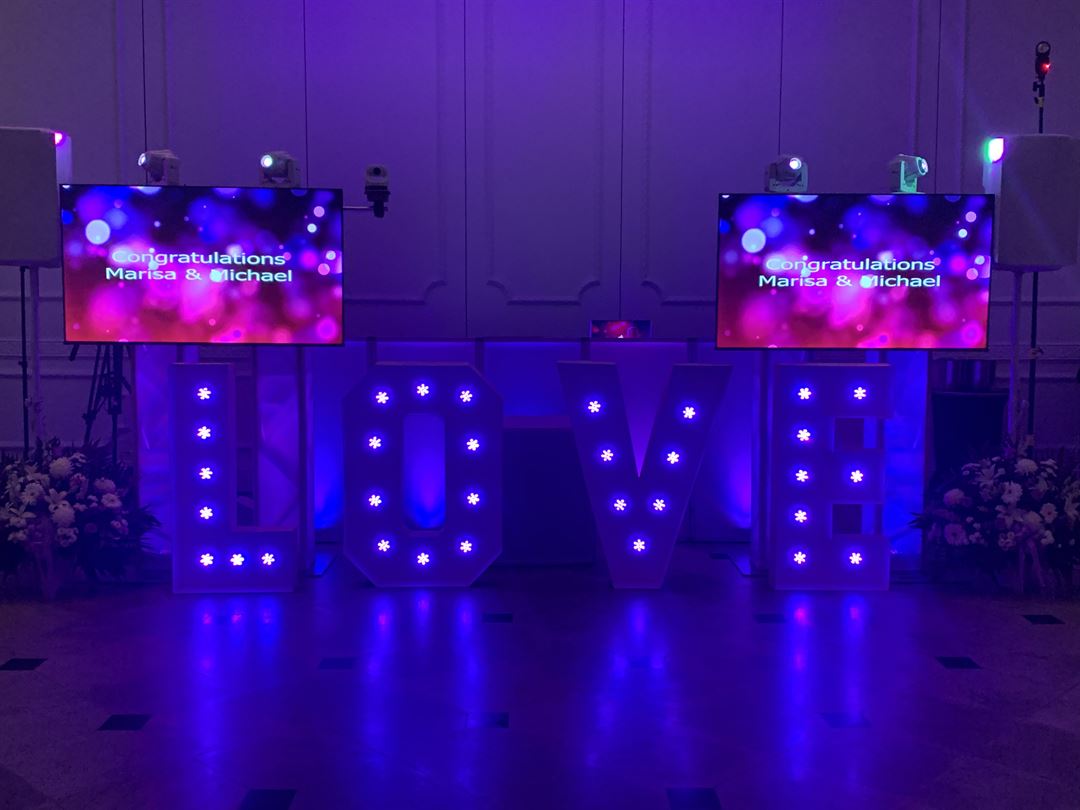 Special Features: Dj & Live Entertainment (Vocalist) Sound/Lighting/Sparklers/Screens Dancing on the clouds/Up lights Led LOVE letters/Photobooths Live Camera Feed/Digital Photos