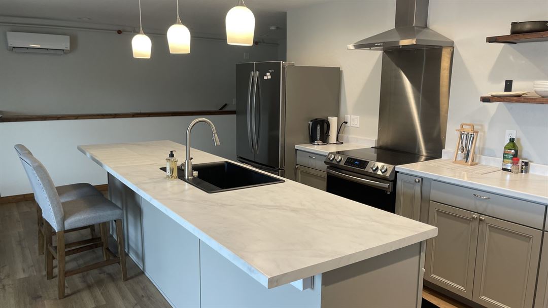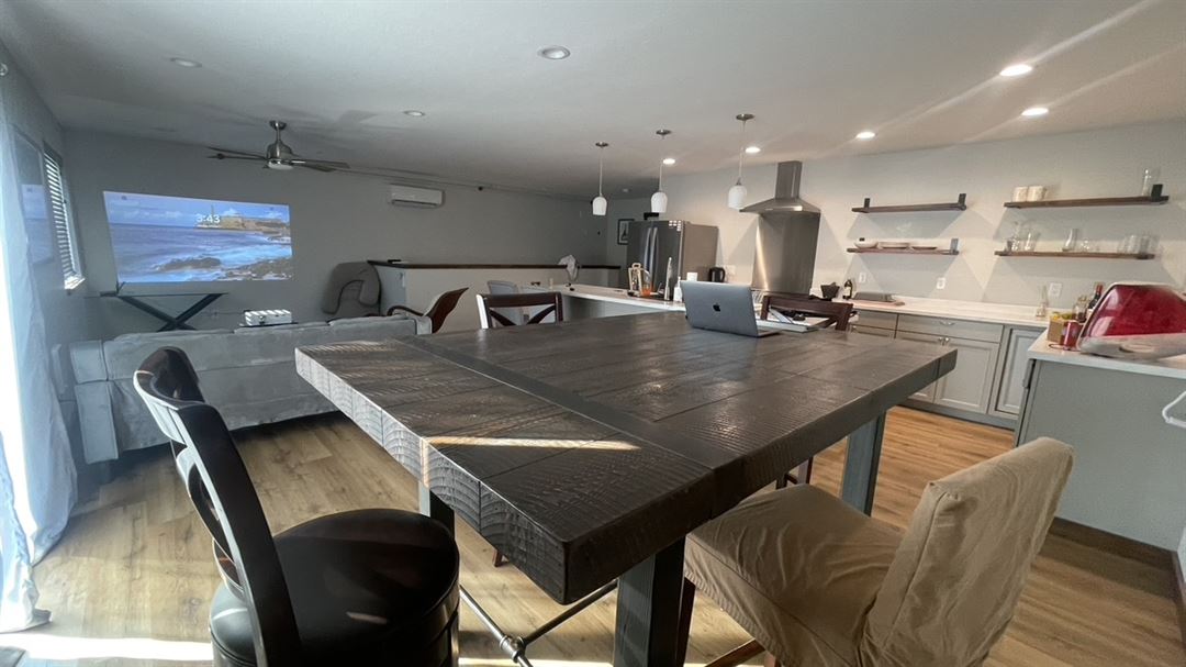FORE! Corners Golf, is more than just a state of the art golf simulator. We regularly host our own events and we can accommodate your requirements for almost any type of corporate or family and friends get together. We have over 800 sq ft of fully furnished living/work space upstairs. Ideal for hosting your very own Golf themed party. We also have working space and room for meetings, along with a retractable 100 inch screen and 4k Projector. Perfect for presentations and sporting event viewing.
