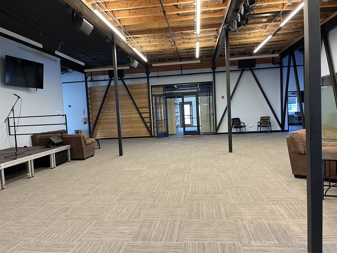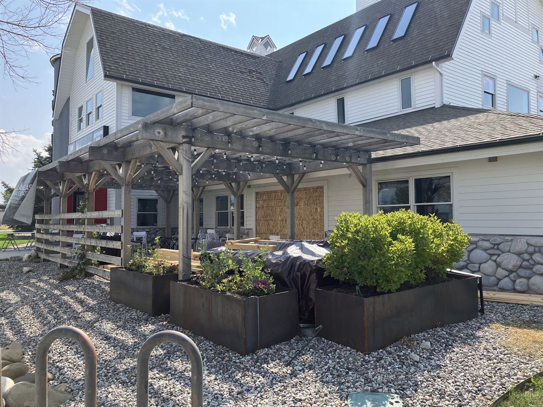 Two 55" screens for projection, sound system and theatre lighting, outdoor seating area with heater, tables and chairs on site. Prep kitchen in room.