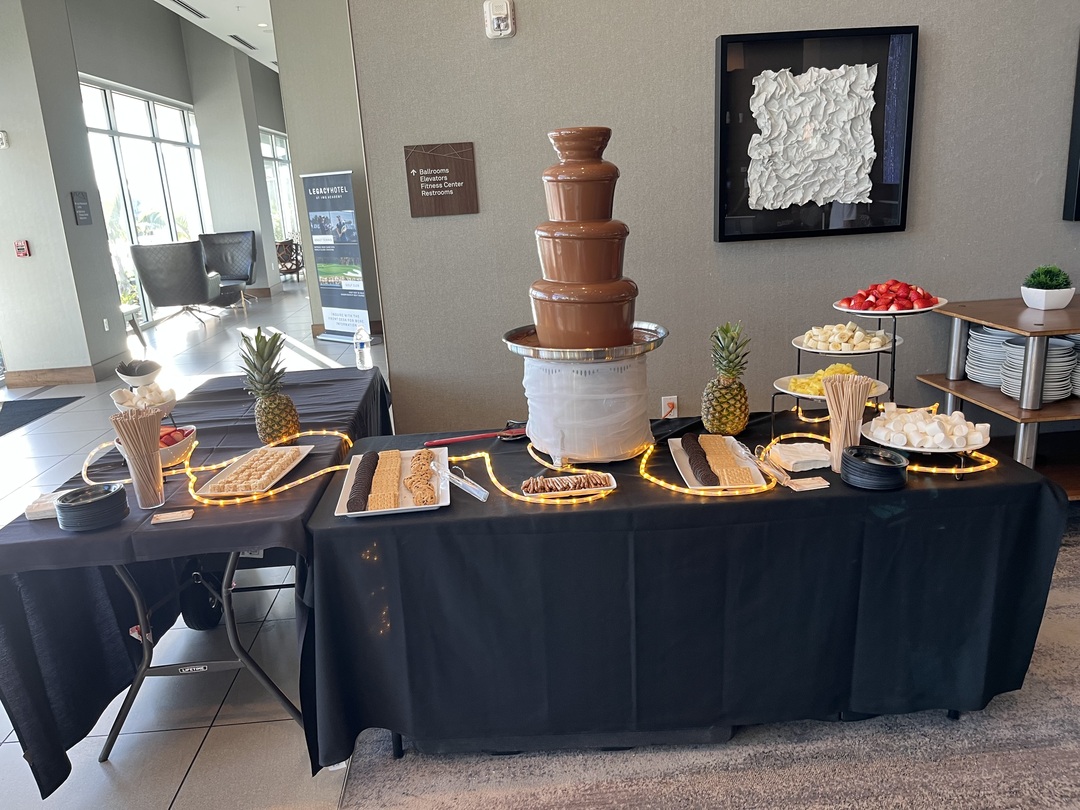 We offer a range of packages to suit your event size and budget. All packages include your choice of Premium GHIRARDELLI Milk, Dark, or White Chocolate, Commercial SEPHRA Fountain, delivery, early setup, cleanup, a professionally dressed attendant, disposable plates, skewers, napkins, a decorative light, and a wide variety of dipping items