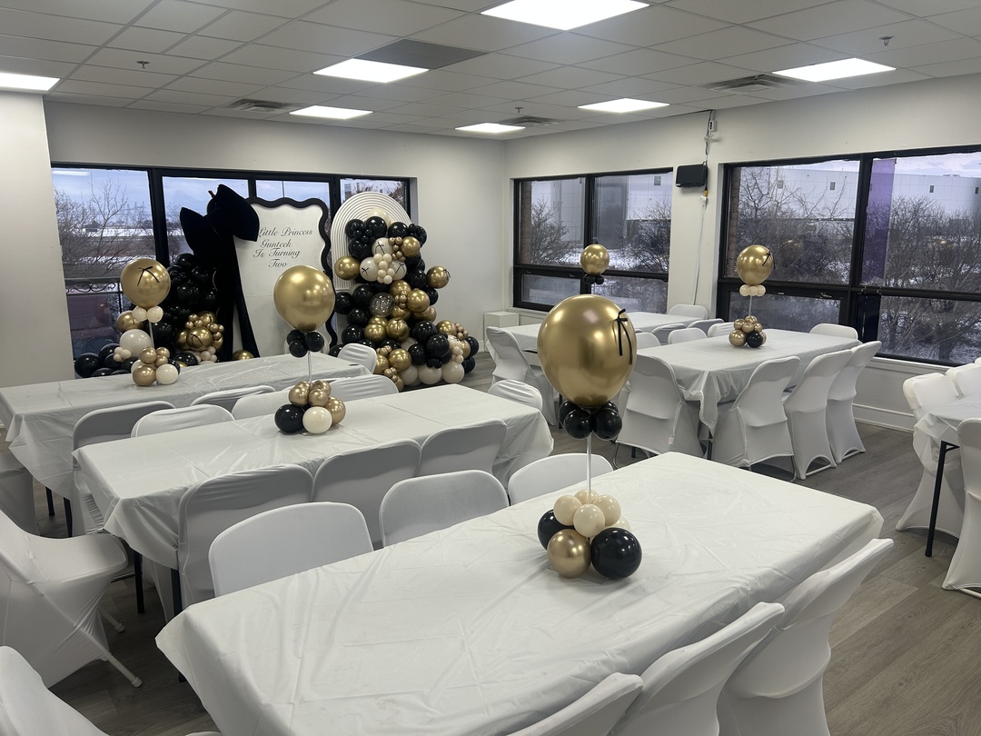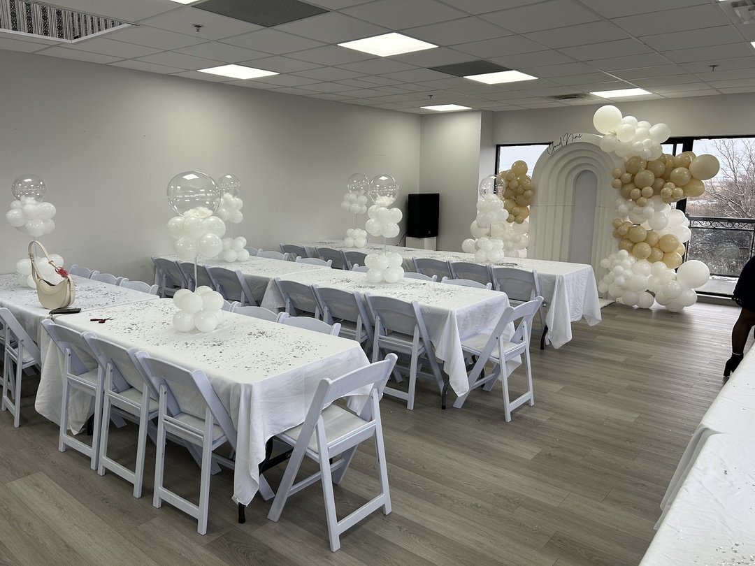 Welcome to a bright and flexible venue designed to accommodate a wide variety of gatherings. Whether you’re hosting a baby shower, birthday celebration, corporate workshop, pop-up shop, photo shoot, or cultural event, this space adapts easily to your needs. The open-concept floor plan features a spacious main hall, a convenient kitchenette, and an outdoor balcony that offers fresh air and extra room for mingling.
