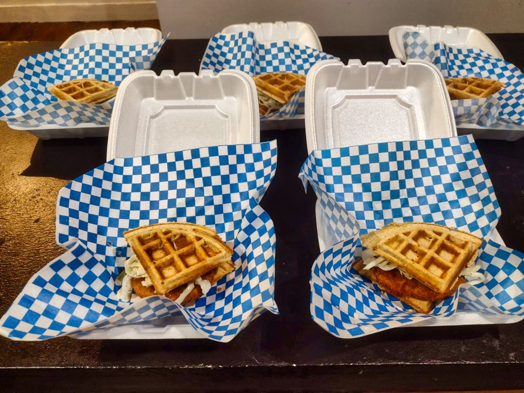 10-15 people 1 savoury flavour, 1 sweet flavour waffle with 1 beverage of choice $35 per person