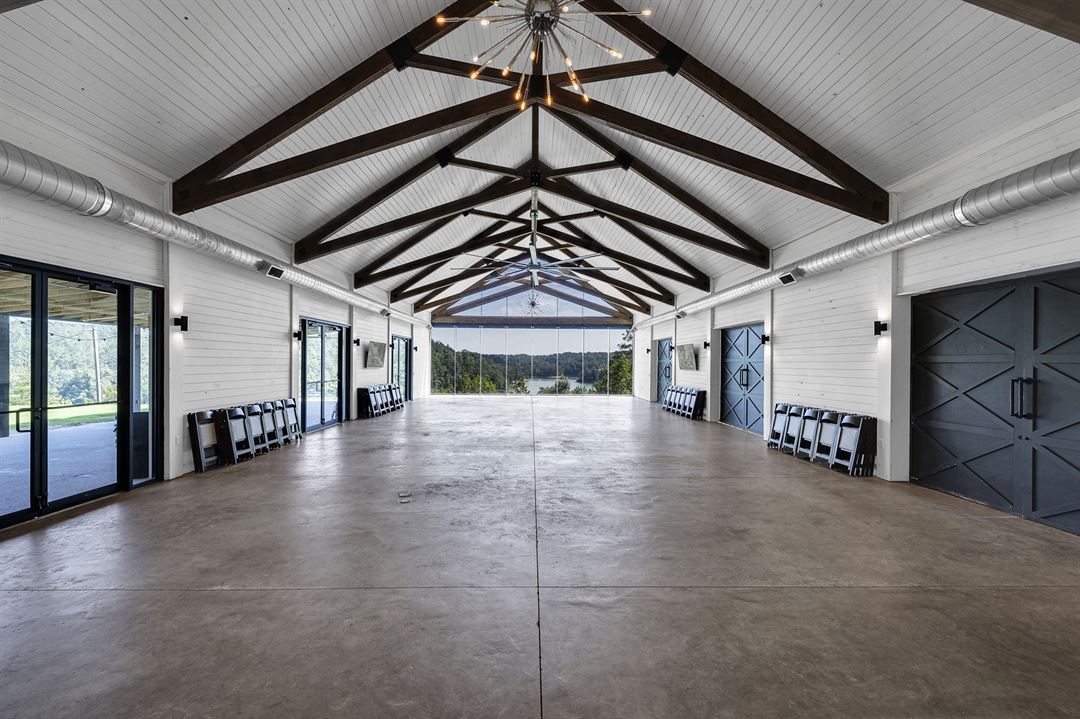 The Barn features fully air conditioned bride and groom's suites, 5 bathroom stalls and an open Main Hall that looks directly out over the popular "Cocktail Cove" at Smith Lake.