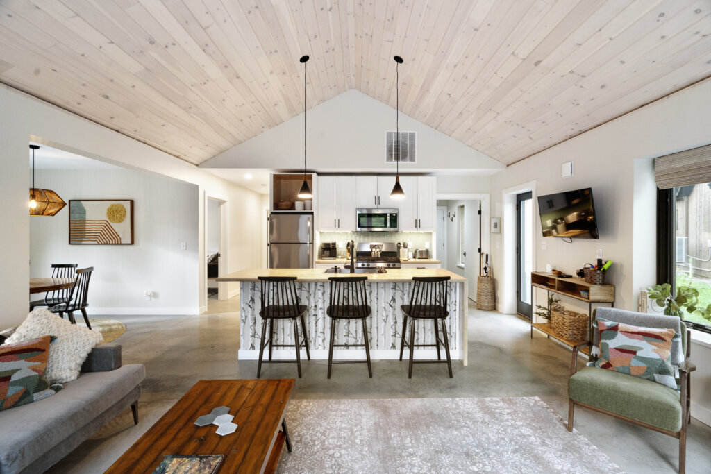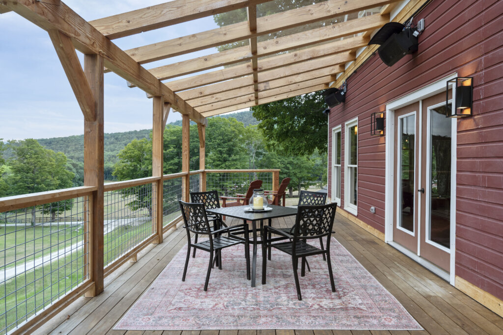 Our award-winning chapel offers a unique space for weddings, meetings, yoga, dinners, and more in a beautiful setting overlooking the farm. In addition to the chapel space, our refectory building has a large, comfortable room with a covered deck so that you may gather big groups together in a variety of different setups.